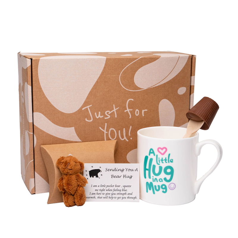 Choose from the comforting phrases A Little Hug in a Mug or Thinking of You. These contemporary mugs feature subtle, understated designs.