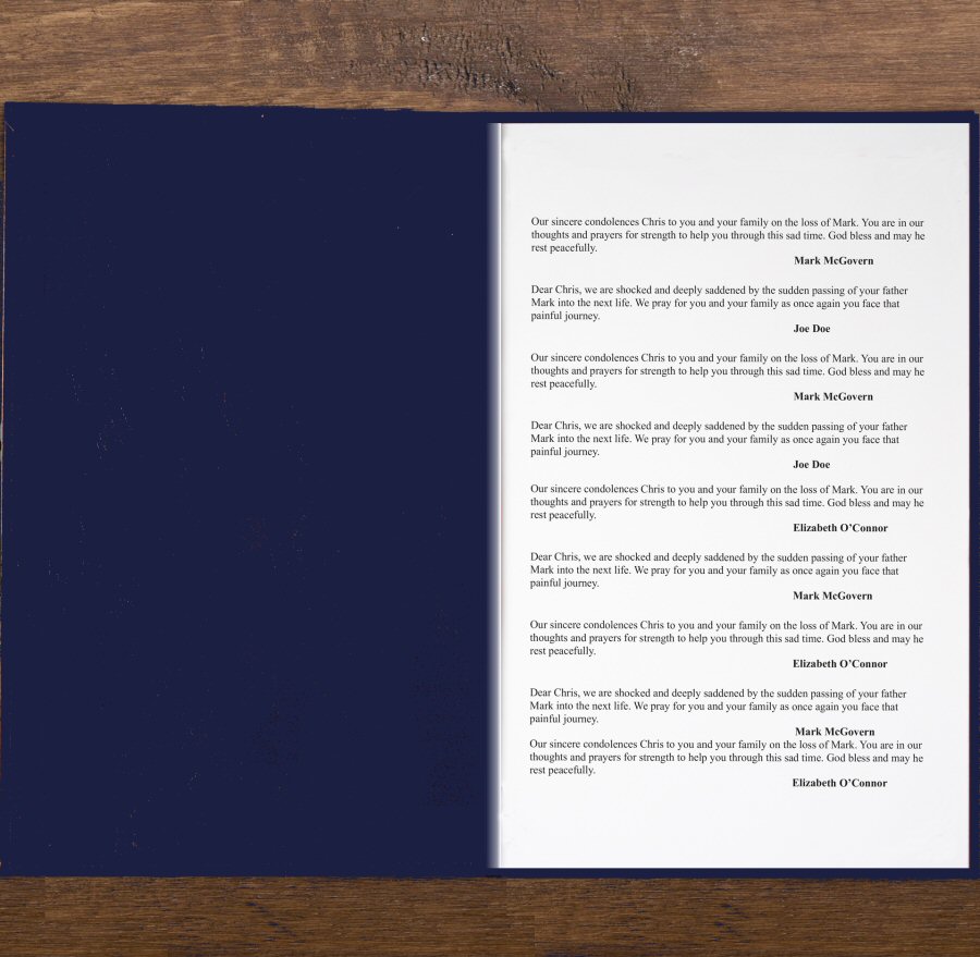 Embossed with "CONDOLENCE BOOK" and CROSS