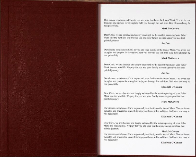 Embossed with "CONDOLENCE BOOK" and CROSS