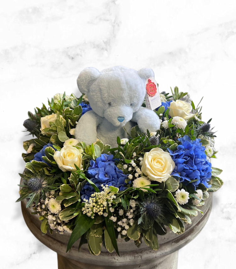 The "Still Waters" wreath offers a profound and elegant expression of remembrance, blending the timeless beauty of classic floral elements with a rustic, natural aesthetic. This meticulously crafted wreath is designed to convey peace, enduring love, and a connection to the natural world, making it a fitting tribute for a loved one's final resting place or a solemn occasion.